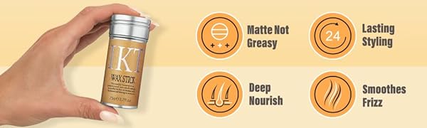 IKT Hair Wax Stickkeeps your hair looking good, flexible and shiny all day, without stiffness or frizz. The light fragrance of the wax stick makes your hair smell clean and lets you create different styles easily. It also has good stuff that repairs and makes your hair soft.